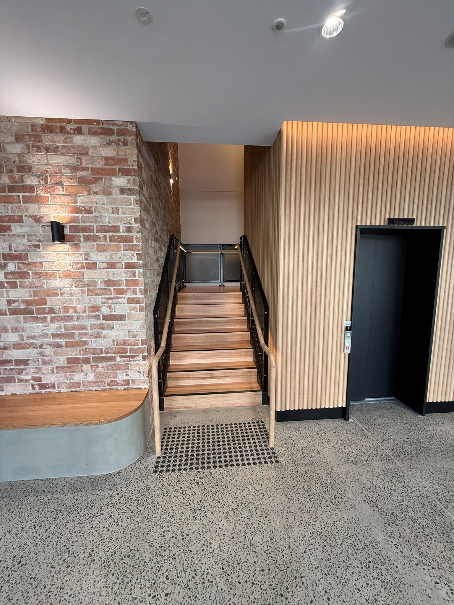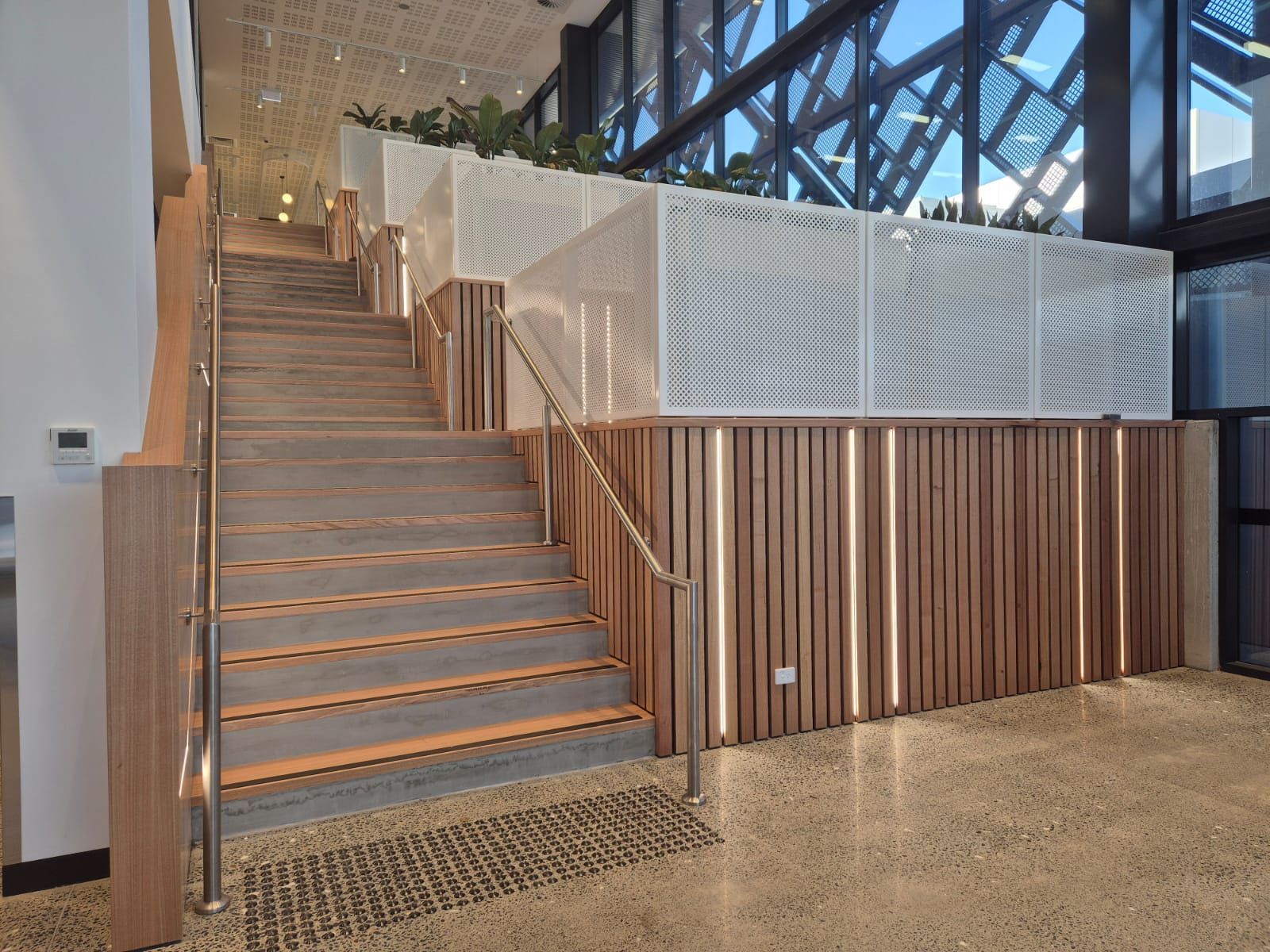 Enhance interiors with our tailored design elements for function and style. From custom timber stairs and stone benchtops to acoustic pin boards, acrylic surfaces, mirrors, and partitioning, each detail adds refinement and purpose to your space.