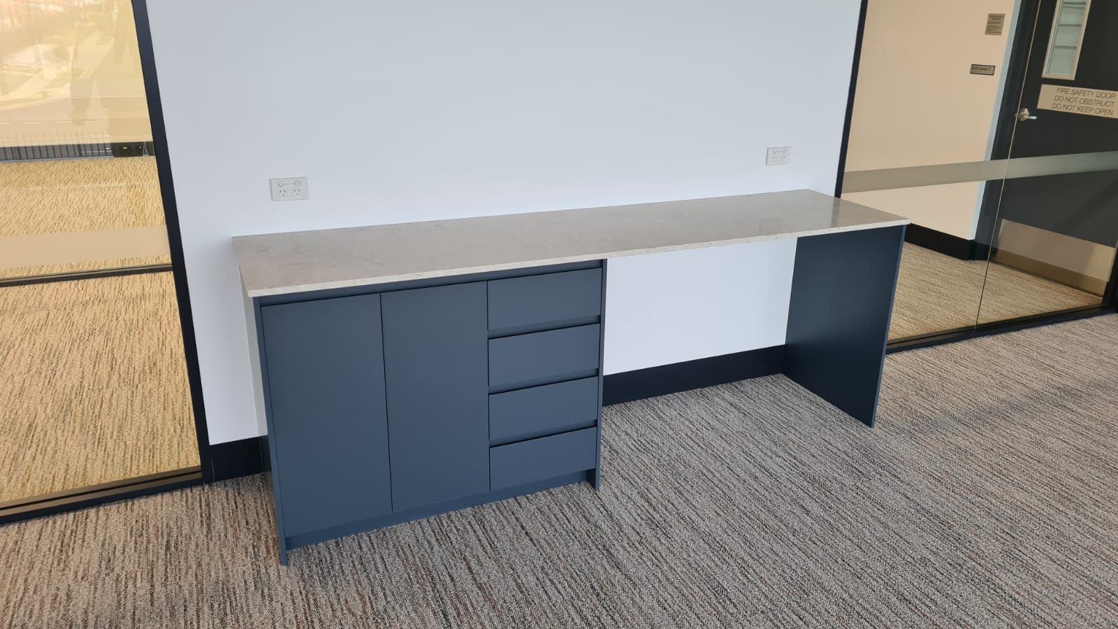 We recently completed a sleek and modern transformation for Bankstown Airport, delivering premium custom joinery across the kitchen, office, and bathroom spaces. A striking timber staircase anchors the interior, adding warmth and architectural elegance to the design. Contemporary finishes and precision craftsmanship come together to create a refined, functional environment that enhances the experience for both staff and visitors. Every detail was thoughtfully executed to reflect a commitment to quality and style, resulting in a space that is as impressive as it is practical.