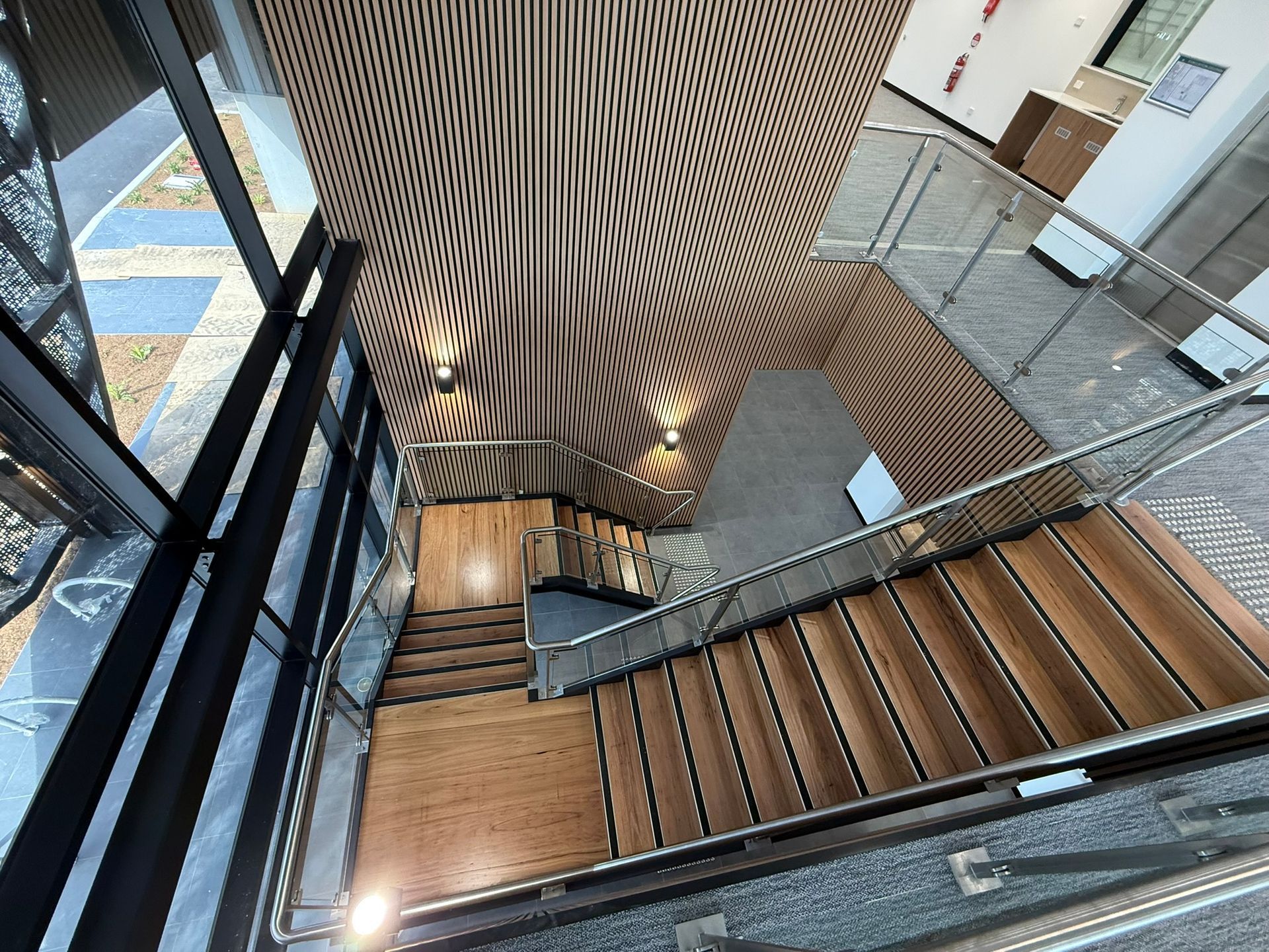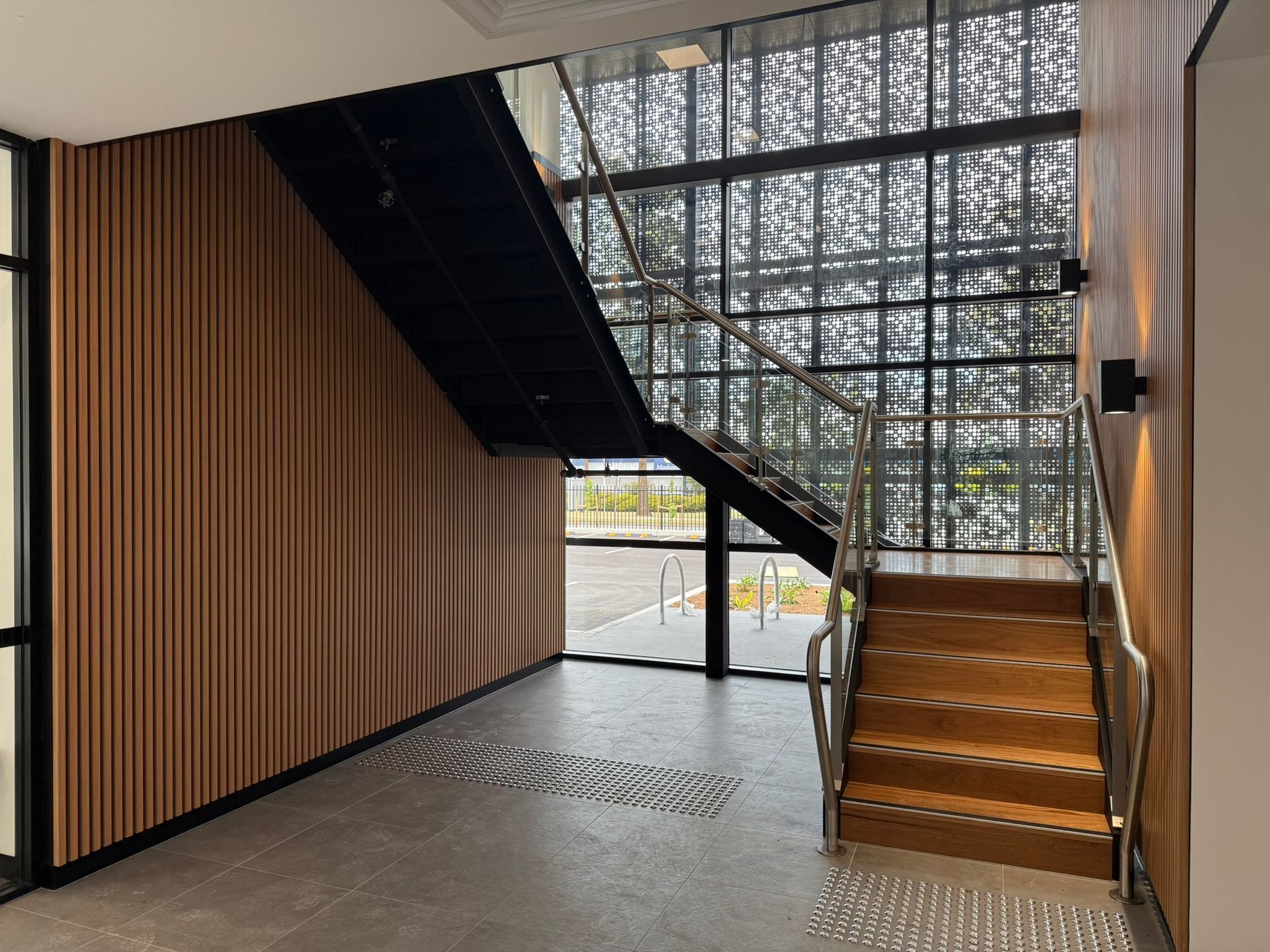 A series of modern interior updates highlighted by rich wood wall paneling, clean architectural lines and open, light-filled spaces. Complemented by the stairs, a modernized kitched and amenities further elevate the space.